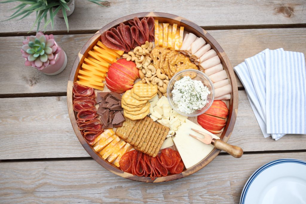 I have a whole post breaking down how to make a charcuterie board and do it for under $30 here if you want to read more. I made this beautiful board over the weekend for our friends and it was a total hit. One person even said it was the best charcuterie board they’ve ever had. My biggest tip is don’t go too fancy, not only does it get expensive that way but sometimes people just love cheddar cheese, crackers and turkey or pepperoni.