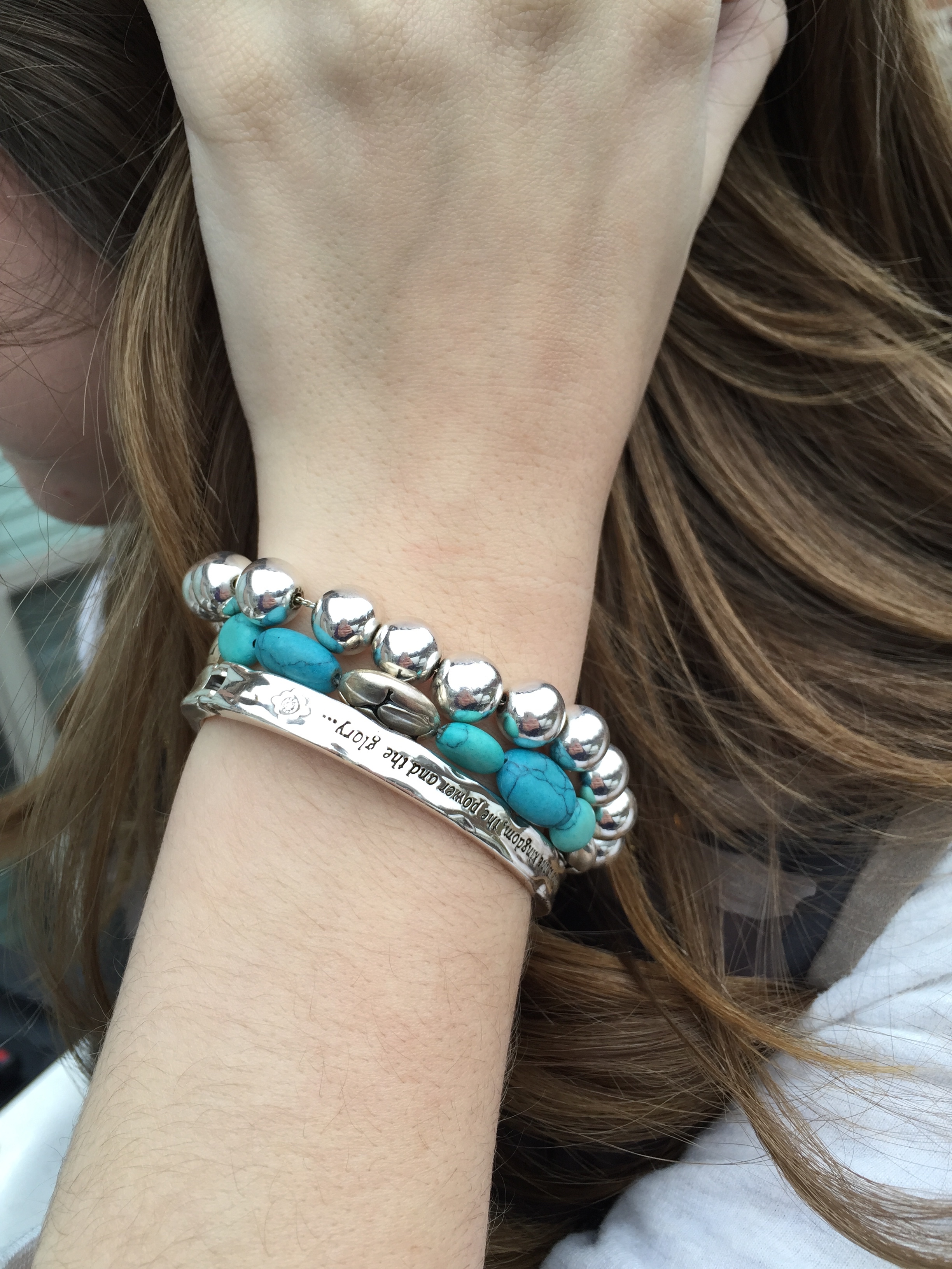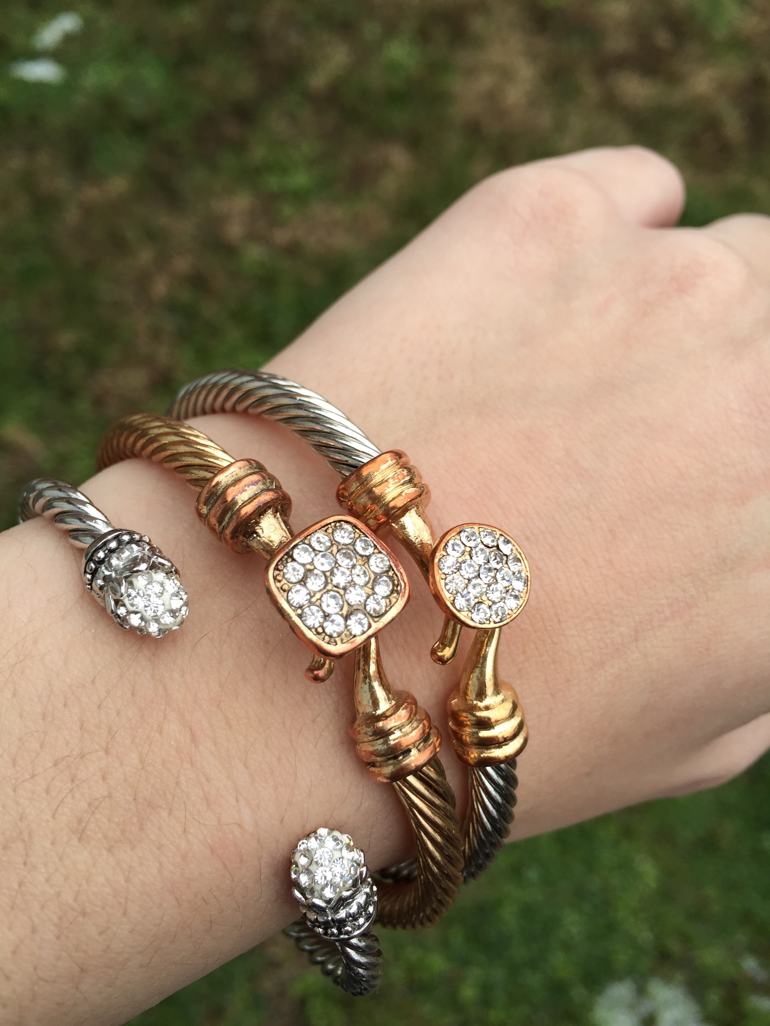 Layering your jewelry isn’t always as easy as throwing a bunch bracelets on your arm and out the door. I like to have my “go to” stack for when I am in a hurry but I’m an organization freak so there has to be some consistency or pattern for me. Below is several example stacks with the theme behind each one. Hopefully, these tips give you some stacking style!