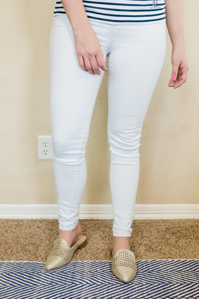 The J.Crew Factory pair was my absolute favorite pair and will become my go-to white jeans in the coming weeks. I feel comfortable wearing these to church, work and out without worrying that you can see through them or being too tight and not flattering.