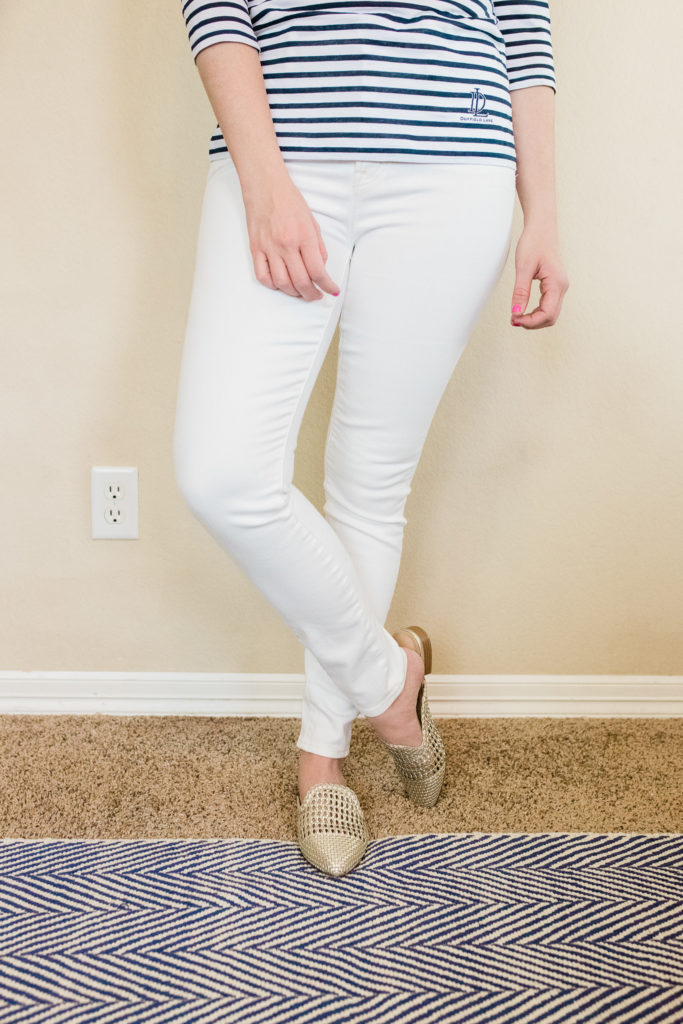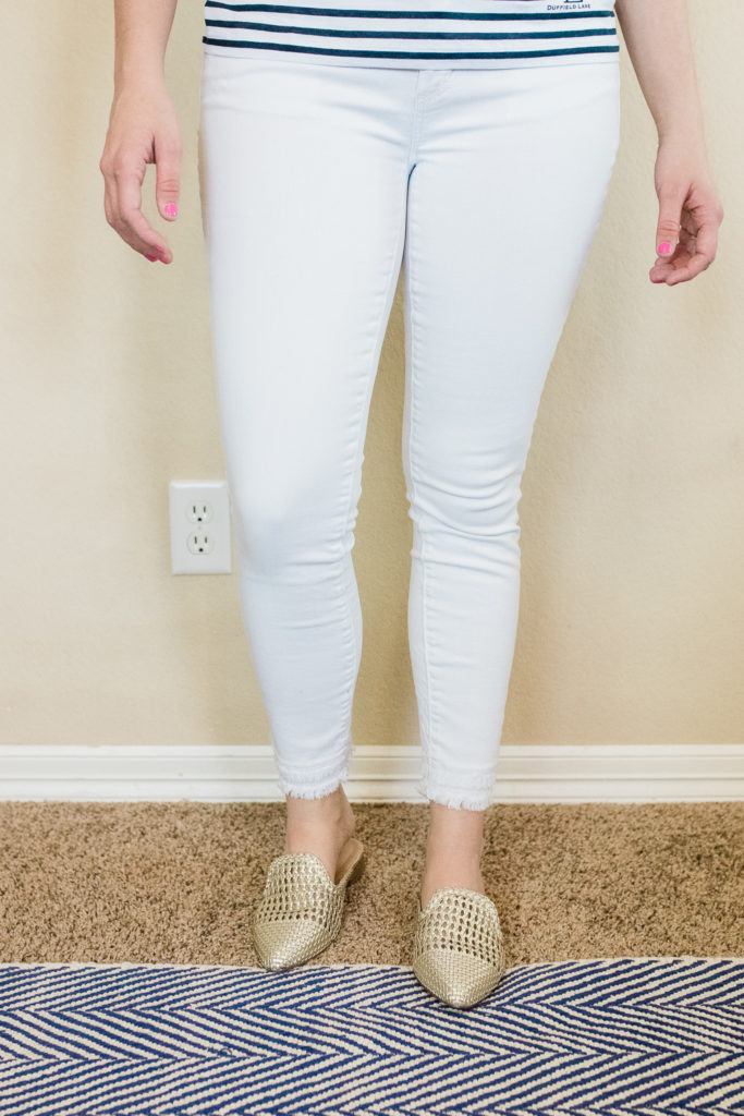 Next is the LOFT Modern Double Frayed Slim Pocket Skinny Jeans. Similar to the Old Navy pair, I did buy these last season and have had a whole year wearing them, but the style is still available. When looking at just the Old Navy pair and this pair, this pair is not even on the same playing field. These have been my go-to jeans for the past year. I really love the frayed detail, it adds a little more detail to plain pair of white jeans and looks like a double ruffle from afar. The fray also looks great when showing off cute summer shoes!