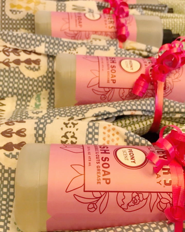 I can’t thank these ladies enough for their generous hospitable hearts. To show a little token of my gratitude I put together these thank you bundles with two dish towels and a bottle of Meyer’s Dish Soap.