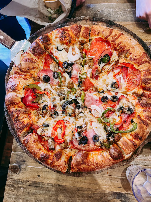 For lunch, we went to Secret Stash Pizza and it was absolutely amazing! Probably the best pizza I’ve ever had. My sister and I split The Hamptons pizza with prosciutto, olive oil, parmesan, and lemon pepper. The rest of my family got the Texas Biggens and a plan sausage and cheese pizza. We also got some fried mozzarella and their crack fries, which fair warning, they are AMAZING and absolutely addicting. There’s a reason why they are called crack fries.