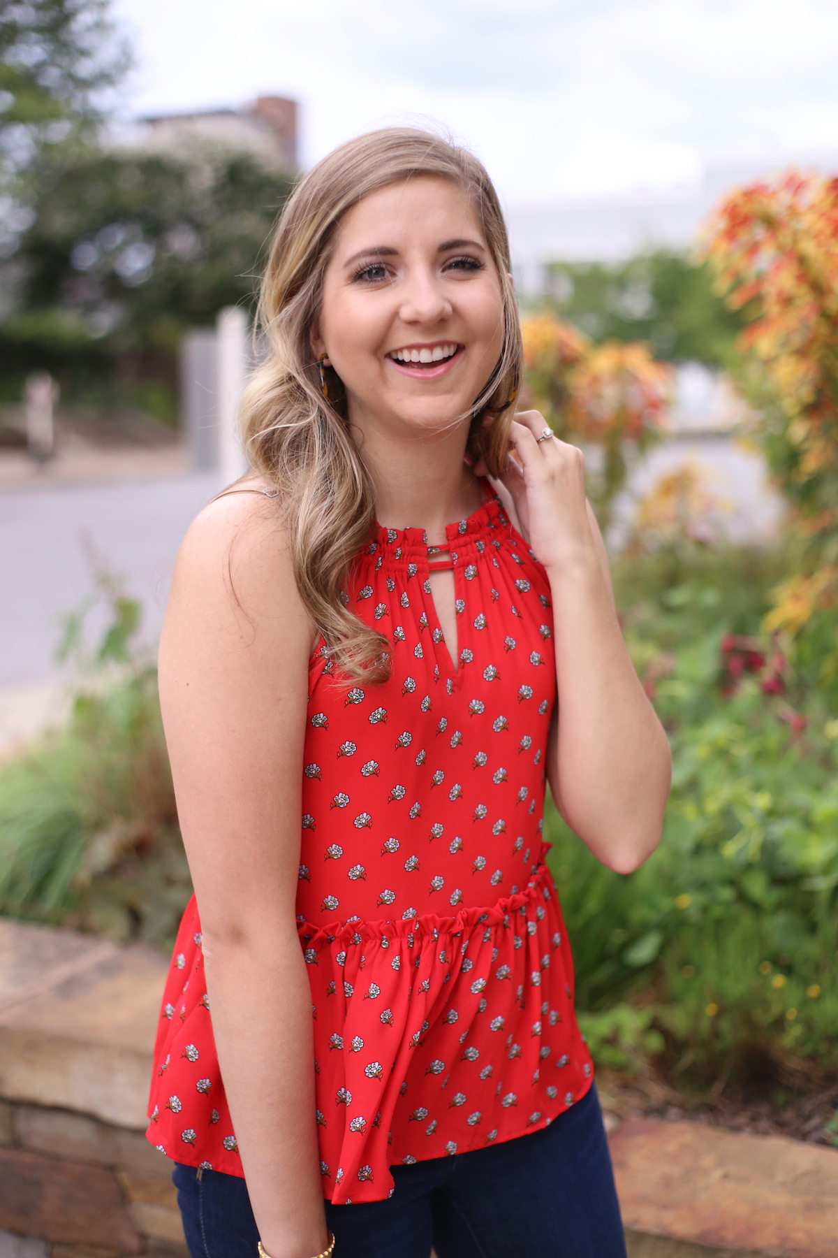 Such a cute top-love the pop of red!