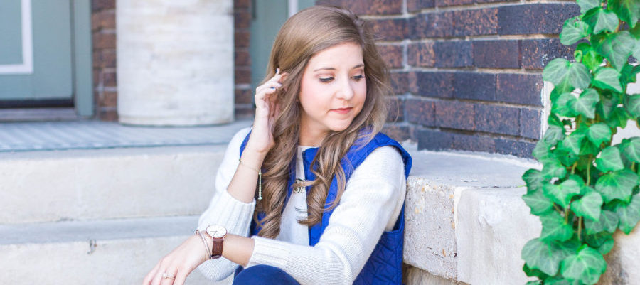 Layering a thick sweater under a vest is my go to in cold weather! If needed I will throw a button down underneath the sweater and a coat on top for extra warmth, depending on the weather…it is Texas after all so you never know.