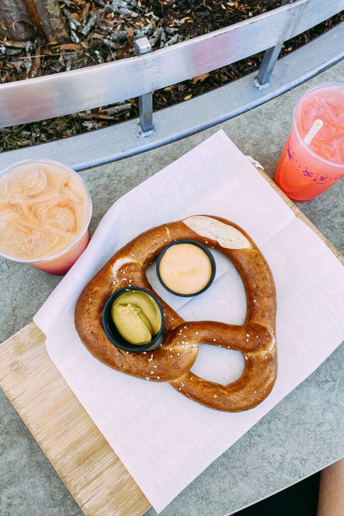 From there, we had ridden all of the major attractions and it was about 4 PM, so we grabbed a pretzel and cocktail at Baseline Tap House. GREAT place for adults! They have pretzels and cheeseboards as well as beers and cocktails with little to no kids on the patio.