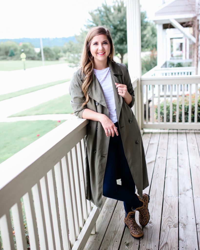 I LIVE for a good trench coat moment. I have both a traditional khaki-colored trench and a navy trench coat this fall. These are timeless and look so chic when styled right.