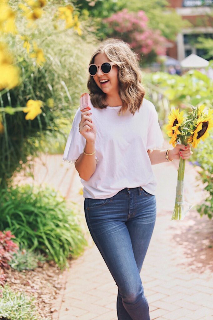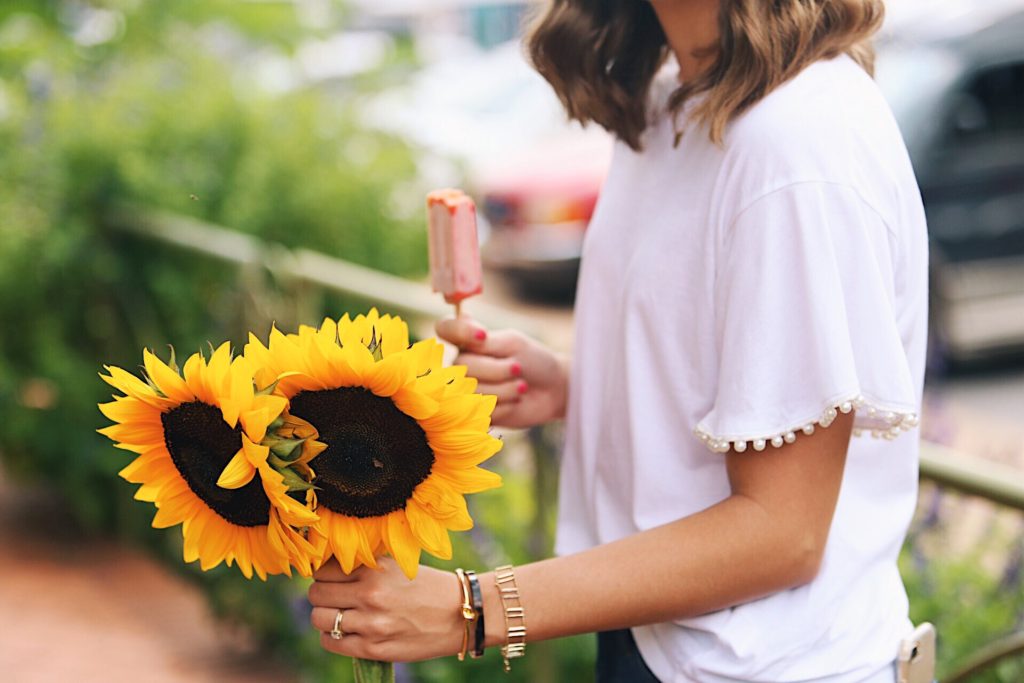 Something that I have been obsessed with since getting married is fresh flowers, something the Fayetteville Farmer’s Market has no shortage of. The sunflowers immediately caught my attention when I walked up! How could they not? They are a beaming ray of sunshine and a gentle reminder of God’s creation.