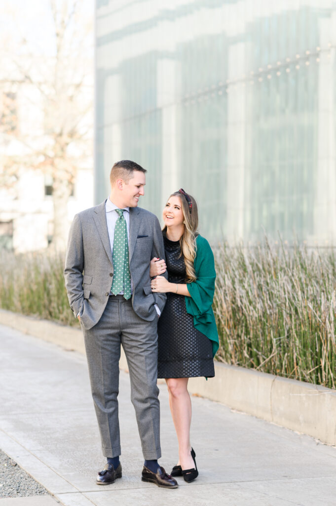 You can’t go wrong with a Little Black Dress, but by adding a pop of green or red it instantly makes it holiday-appropriate!