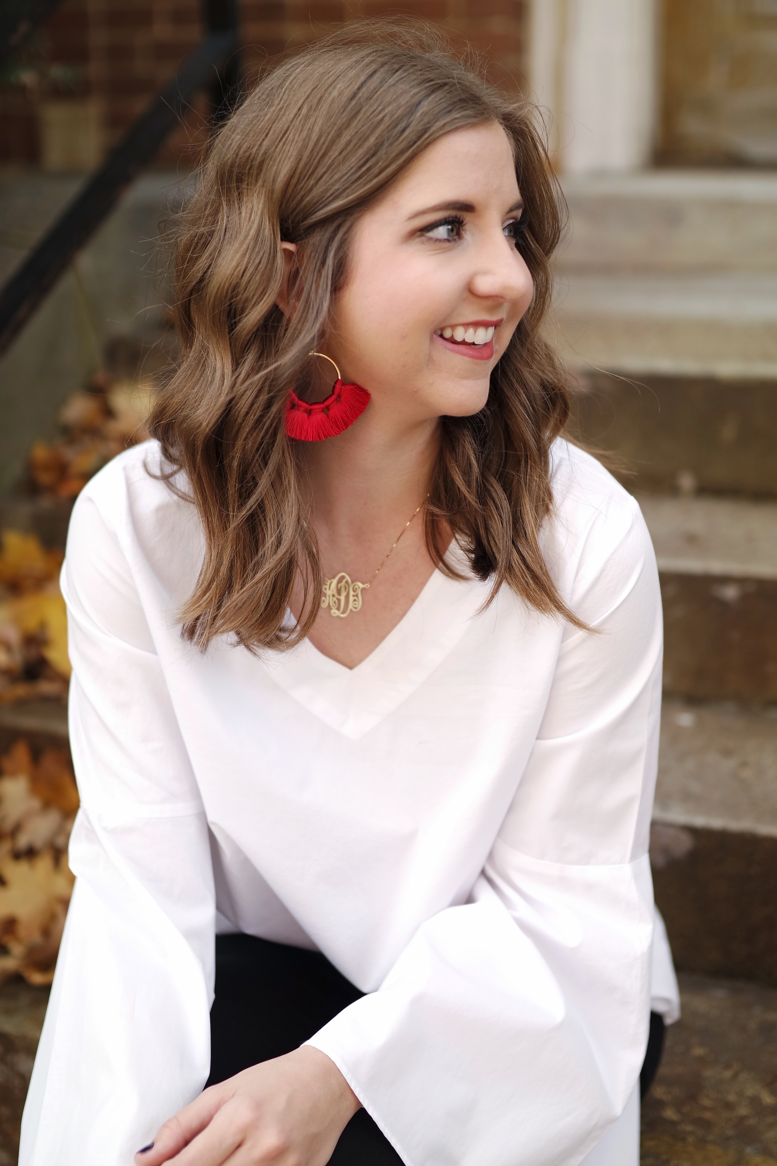 If you are lucky enough to root for Alabama, Arkansas, Texas Tech, Texas A&M, etc. then you probably already have red/maroon earrings or statement jewelry in your closet. A few posts back, I styled these earrings for gameday, but since I already have them in my closet I took these game day earrings from Lisi Lerch and styled them for a holiday-ready look.