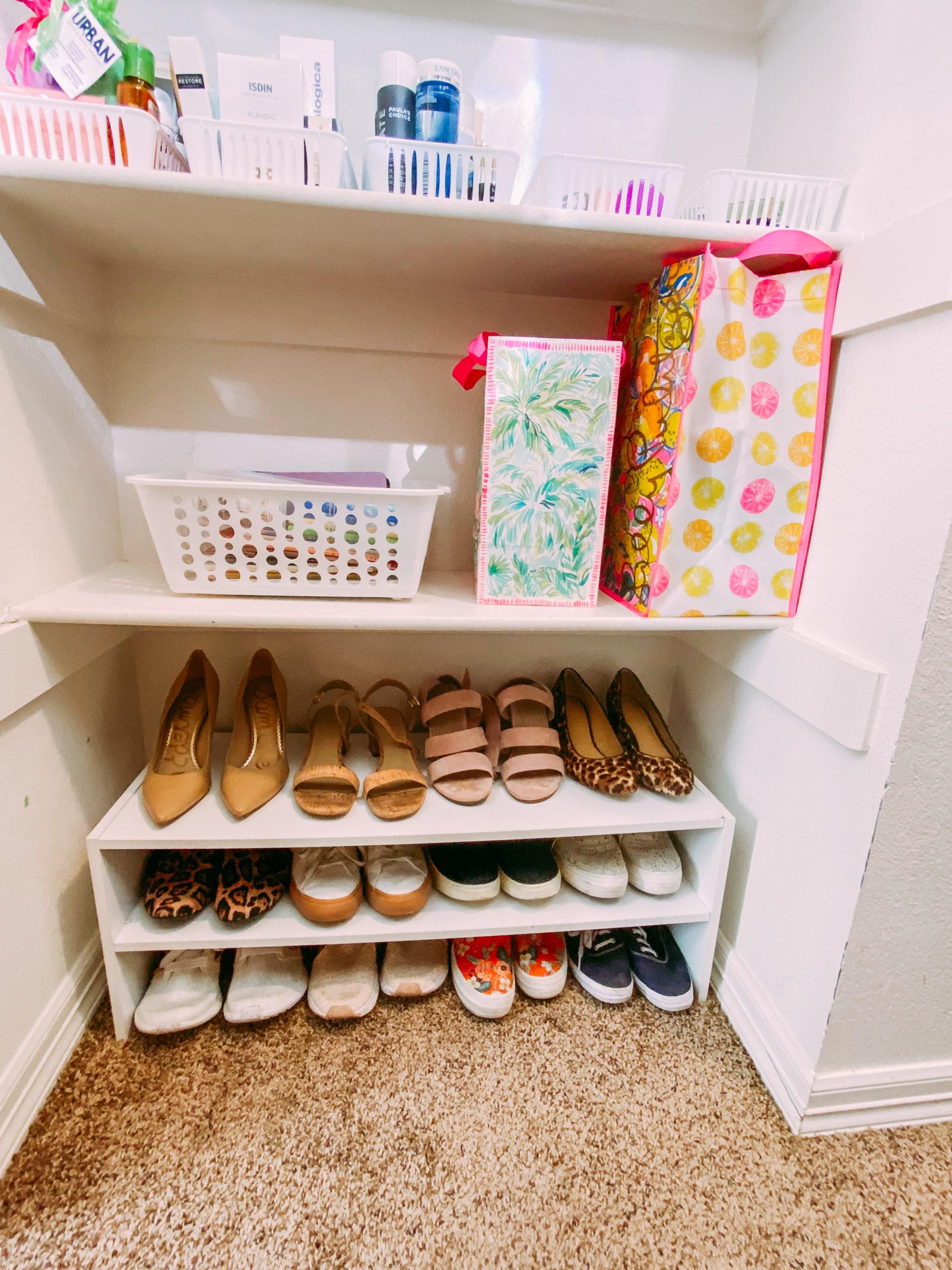 Lastly, I had the built-in shelving unit which could have been used for shoes, but as I mentioned I receive quite a few PR packages and needed a way to organize the beauty and other items I receive.