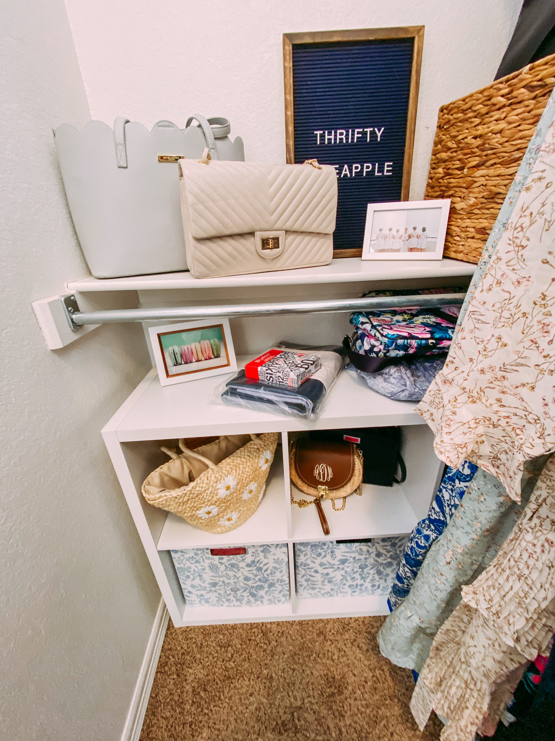 Because I am so blessed to receive numerous PR packages and have purchased a lot of clothes for Thrifty Pineapple in my head my office closet was where everything would neatly be placed, however, it turned into a place I shoved everything to make my office clean for photoshoots or try-on sessions. My goal in the mini closet makeover was to make it feel like a mini boutique in my office. A place where I could display items but also use it functionally.