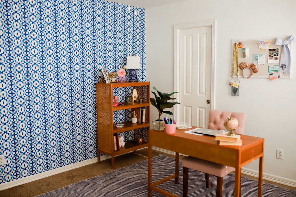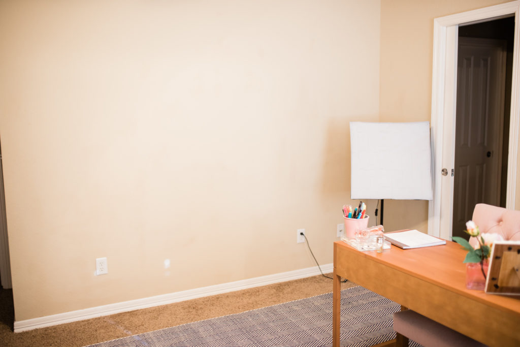 Before we applied the wallpaper, we painted the entire room for a more cohesive look. Since this is my office and I take a lot of photos in here I needed it to be brighter and white and it also matched the wallpaper better.