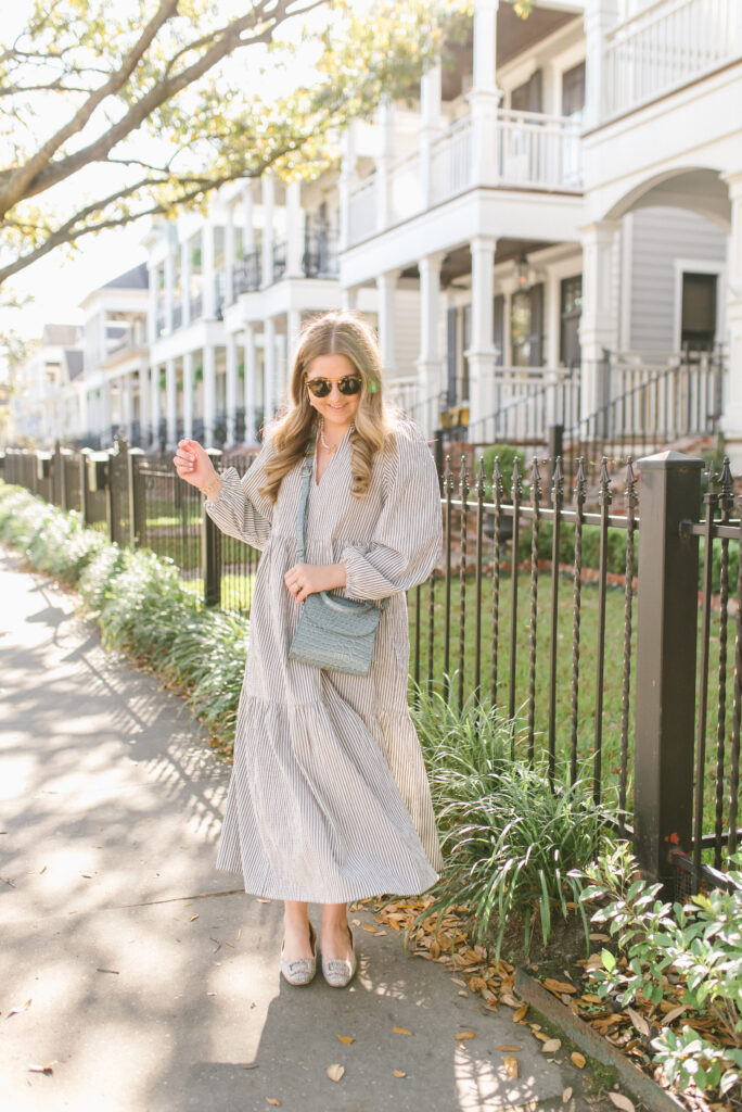When it comes to spring and summer I live in dresses, especially in the Houston heat I find them to be way more comfortable than jeans or shorts. I love casual maxi dresses because they can easily be styled for many different occasions. I prefer one to have some type of sleeve just because it makes me feel more confident. This Target dress is a total gem and it comes in several different prints/colors. Here’s a closer look at how to style a casual maxi dress with sleeves for summer.