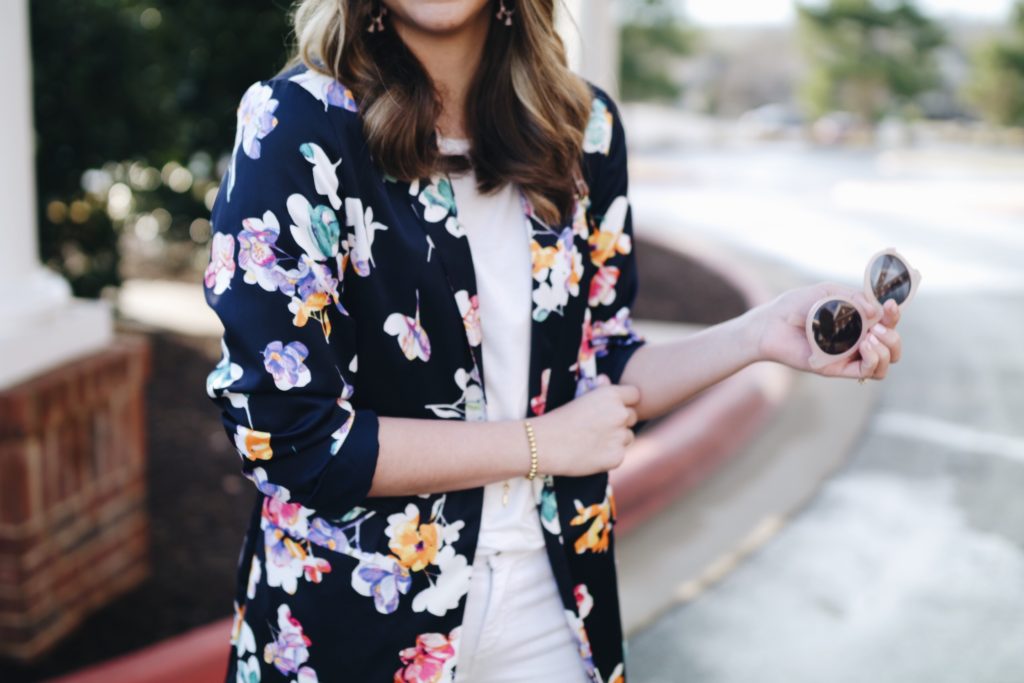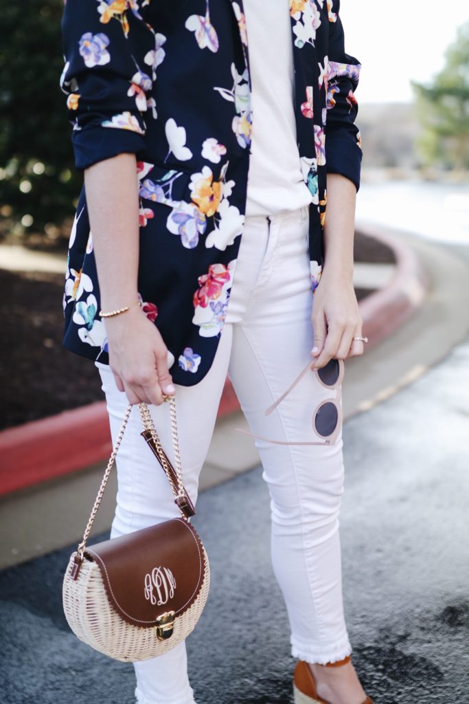 I had been eyeing this floral blazer for weeks, so I decided to finally pull the trigger. It’s not my typical piece I would wear, but styled like I did it seems very classic and preppy. This floral blazer reminds me so much of something Kate Spade would come out with, however, it was not the Kate Spade price tag. (it’s actually on sale for even cheaper than I initially paid. Shop it here!)