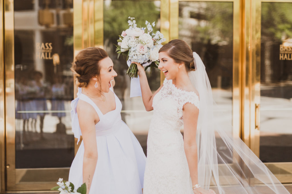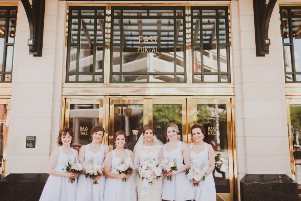 My favorite part about the Lauren James Bridesmaids dresses is they flattering on everyone! You would think because the back is so open and revealing that it would make it unflattering, but because the bow and the straps it really camouflages any problem area. The waist line also played a big part in making everyone look their slimmest. Plus the dress had pockets!