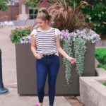 I picked a different type of color than I normally would go for, but I’m really digging it. I typically go for the dark wash, but since they were free I thought I would branch out and get more a distressed broken in color. I am seriously in LOVE with these jeans. The fit is perfect, the color is perfect, the quality is perfect and the length is perfect! I will definitely be purchasing more Madewell denim. Now that I know my size I will be scouring the sale page.