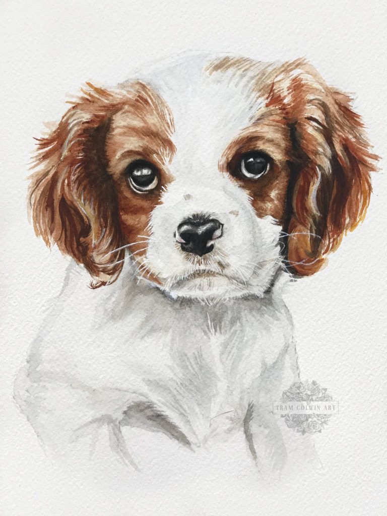 Happy National Puppy Day! What better way to celebrate today with a custom pet portrait of sweet Beau. A few weeks ago artist, Tram Colwin, reached out to me wanting to do a custom pet portrait of Beau. Being the crazy dog mom that I am, I was ecstatic. Since Beau is growing up so fast it’s so fun to have something tangible to keep in our home forever!