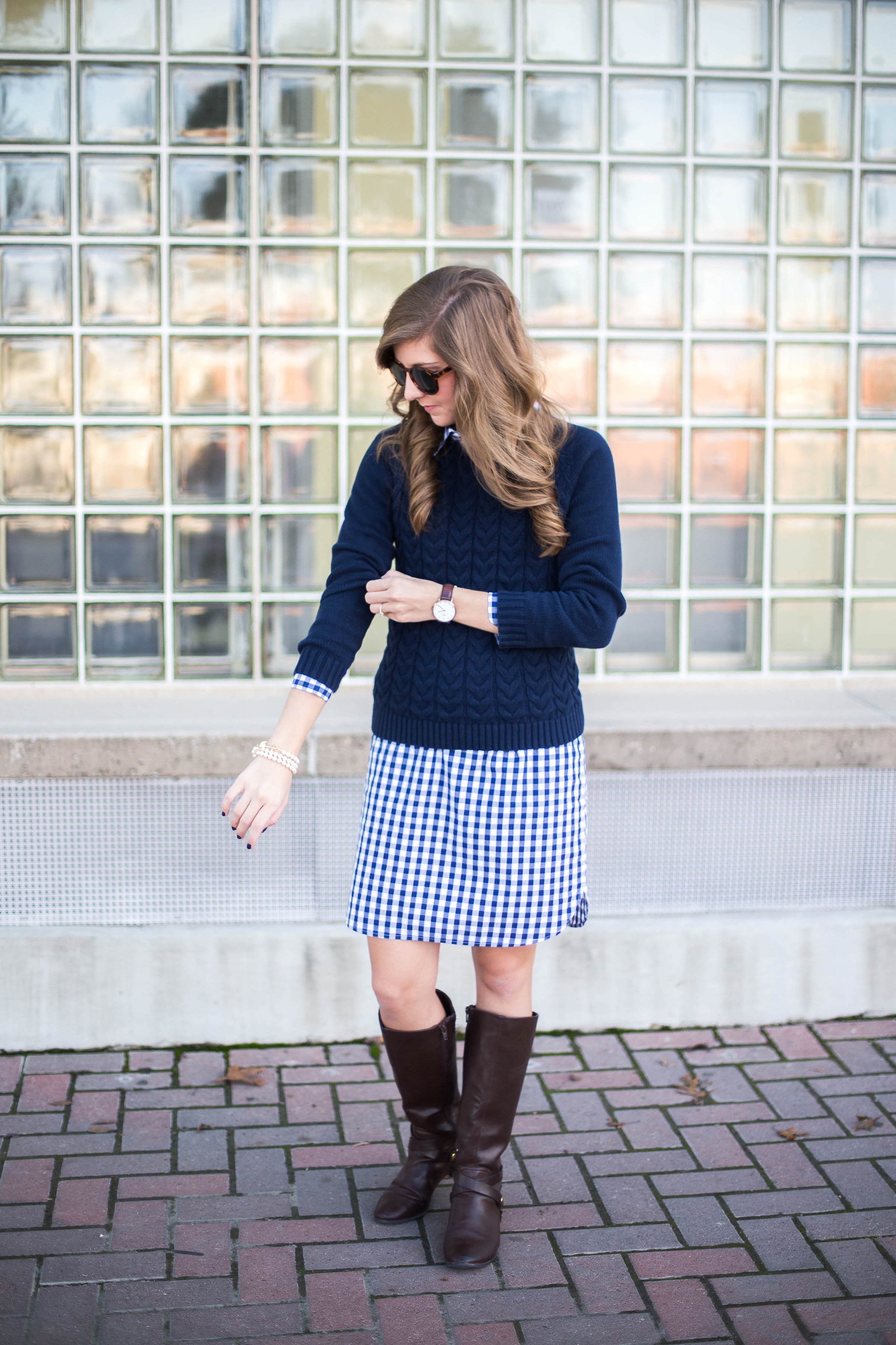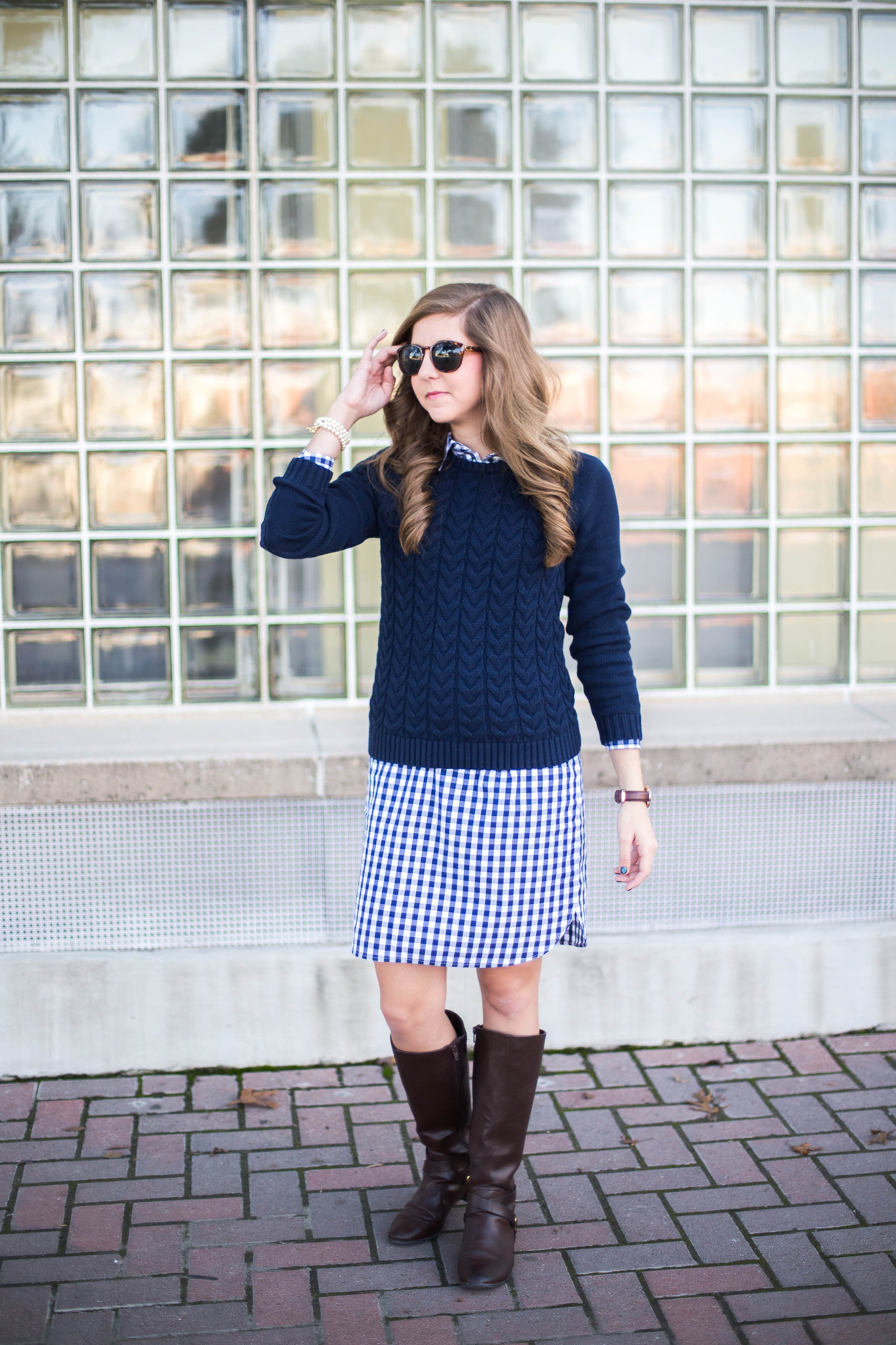 Do you ever have those days where you walk into your closet and you think you have nothing to wear? As a fashion blogger I have ALOT of clothes, but I still have those days. Sometimes I just have to get creative. I was STRUGGLING to find something to wear and after about 10 minutes of staring at my clothes, I had the idea to throw this sweater on top of a gingham dress.