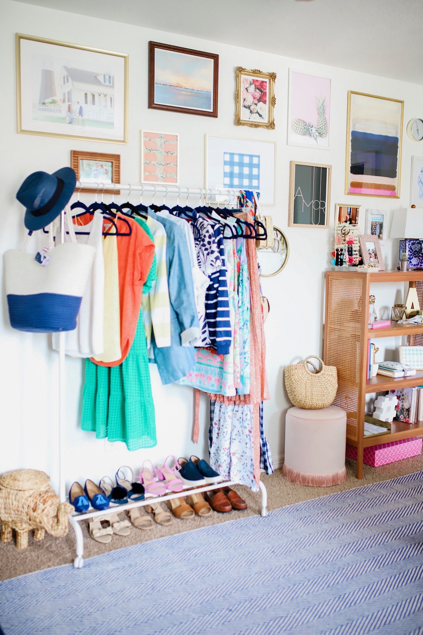 I knew I wanted a clothing rack and just had this for a long time, then one Saturday out of boredom I decided to do an impromptu gallery wall. I had no process or plan, just started hanging things up that I already had and I am SO happy with how it turned out.