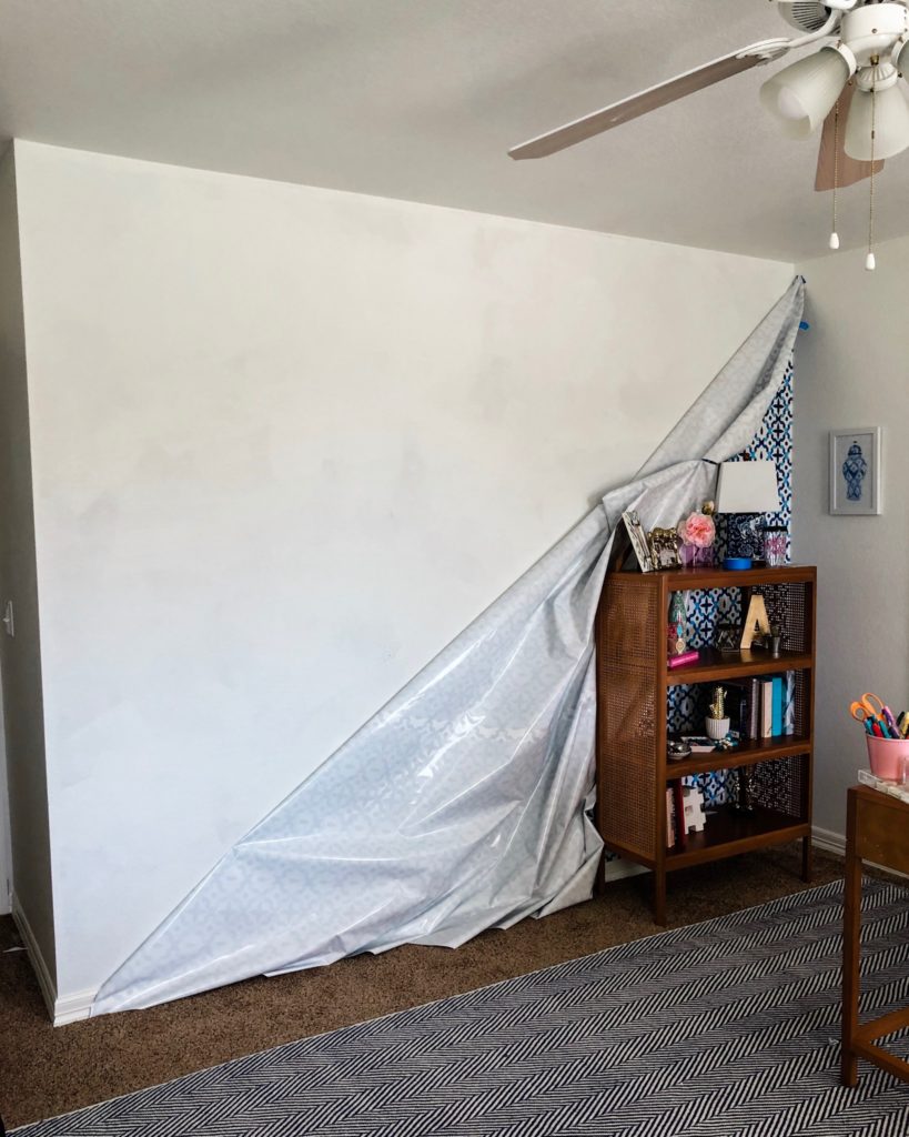 All of the wallpaper just completely fell off the wall…WHAT?! In short, I was not happy. One, it took a ton of work, and two, I NEVER want to share something with y’all that I am not 100% behind. I would be so sad if you bought something with your own money and it turned out horrible.