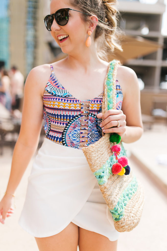 Another perk of a one-piece is you can just throw on some bottoms like jean shorts or a skirt like I did here and you don’t have to worry about a full cover-up or throwing a dress on top.