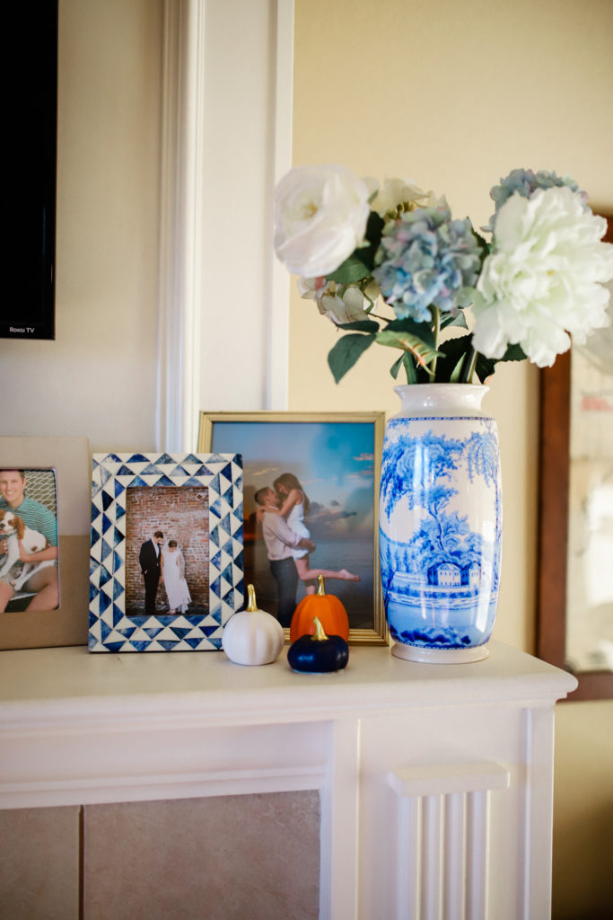 I picked up these tiny ceramic pumpkins in the Target dollar spot last year and think they are so cute for just adding a touch of fall throughout the house. I have some on the mantle, by the coffee maker, on the coffee table, side tables, really everywhere I had space.