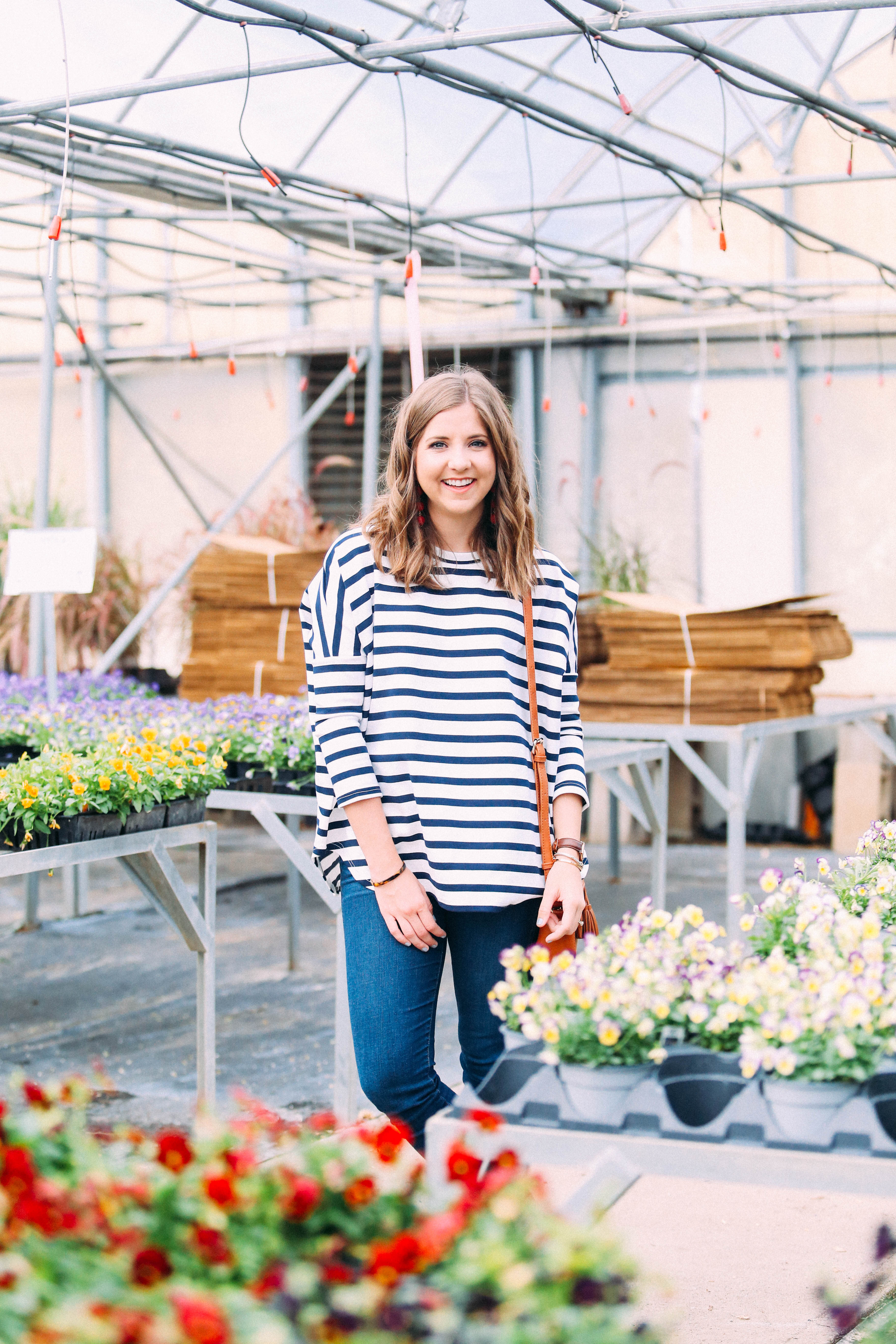 Finally, I topped the look off with a cognac colored cross body. Adding a cross body purse will instantly make any look more youthful and laid back.