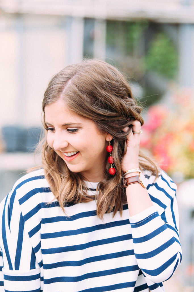 Summer was the season of statement earrings and luckily that trend is sticking around for colder months, so don’t pack up your baubles just yet! I added a rich maroon statement earrings to dress up this simple sweatshirt.