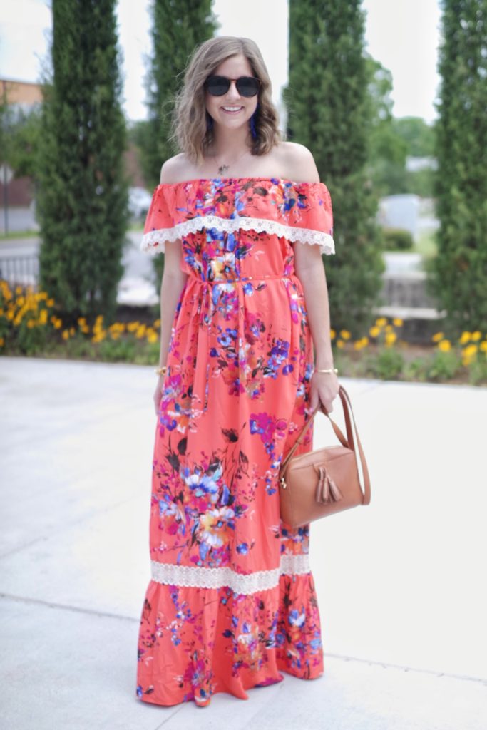 Off The Shoulder Floral Maxi Dress