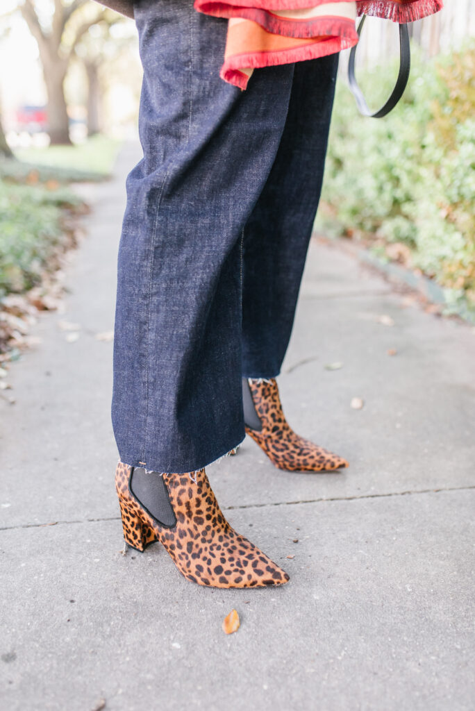 I also think cheetah is a timeless print, and some could argue a neutral print. These cheetah booties paired with the bold print of the scarf totally make this outfit. Whether it’s heels, booties or flats I think everyone should have at least one style of cheetah shoe in their closet. They can take a rather simple outfit to the next level just by adding a pop of cheetah.
