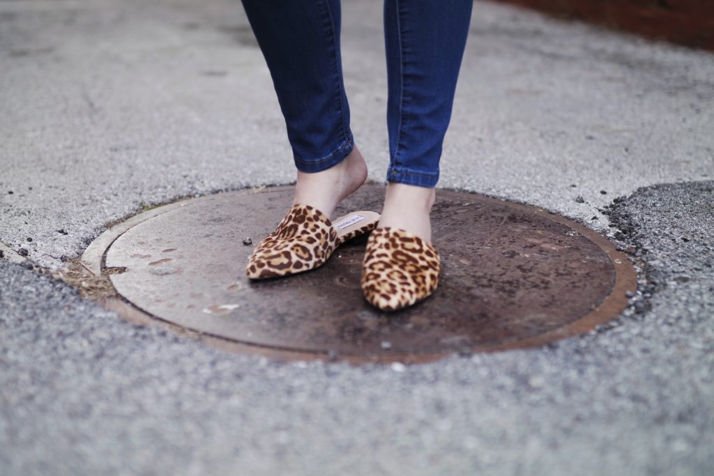 I consider leopard a neutral, so it’s no surprise that my leopard has been all over this year. I love the leopard mule trend because it adds some fun to the outfit. This shoe can easily be worn from the office with an all black chic look of out to drinks with a fun pop of color and statement earring.
