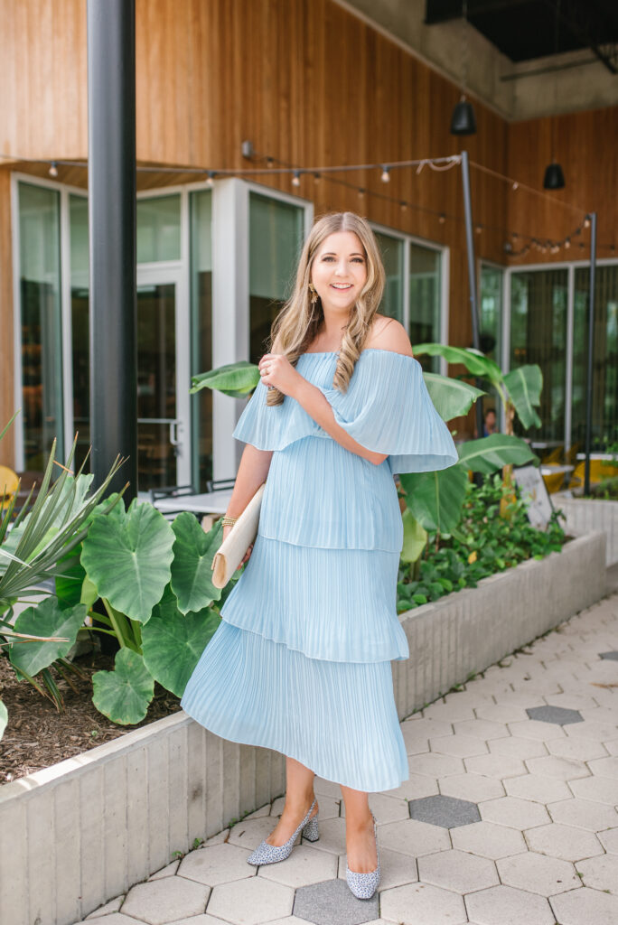 This dress is perfect for weddings but also perfect for church, Easter, baby showers, galas, bridal showers, and literally so many occasions. It can easily be dressed up for cocktail attire or dressed down for church. I’m also wearing a medium in this one.