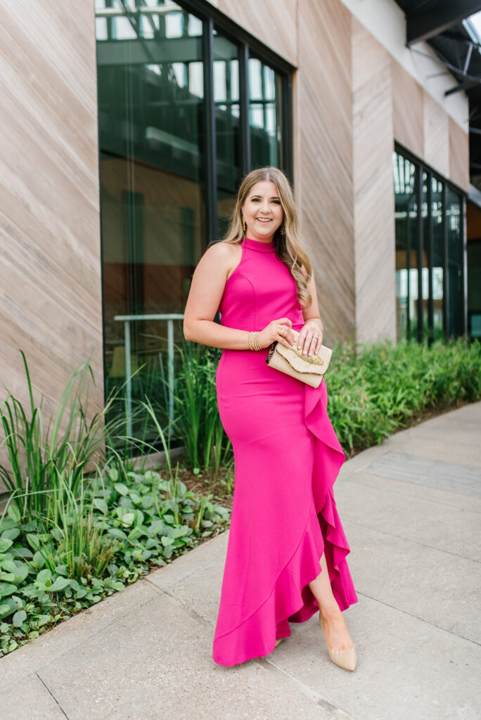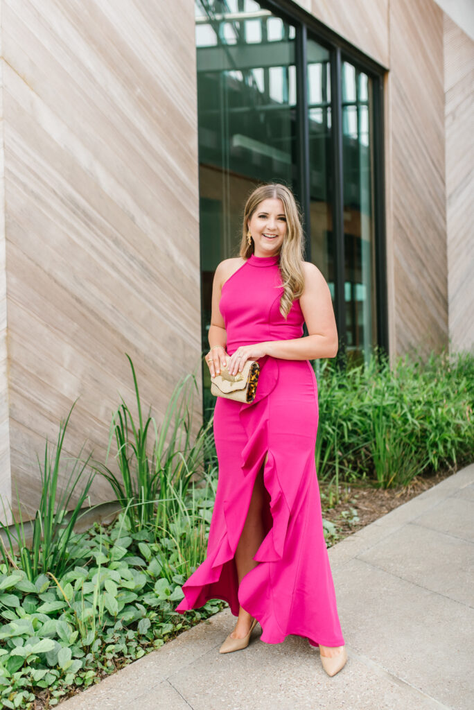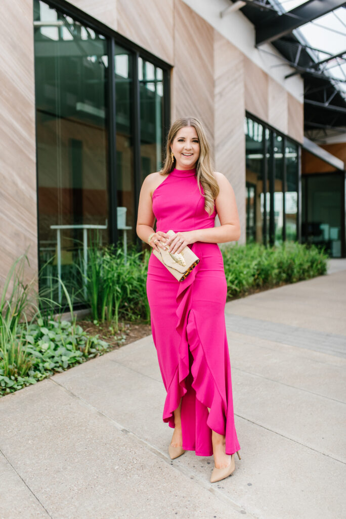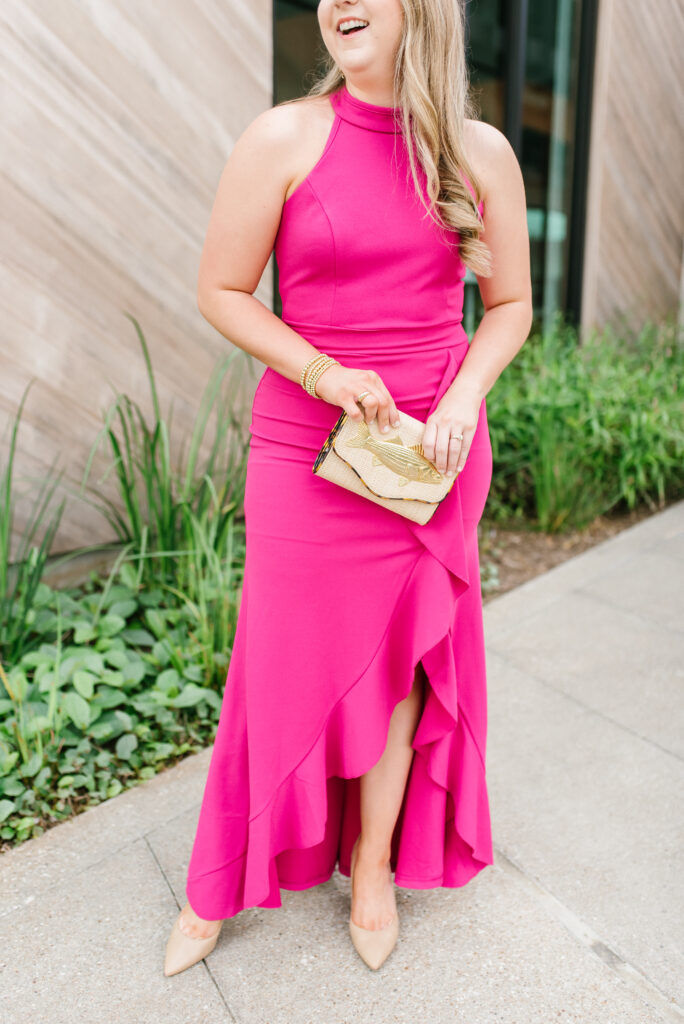 Lastly, I wanted to share one formal option as a wedding guest dress from Amazon. I actually ordered two formal options but one was complete trash and terrible quality but this one was a total gem. It’s fun and flirty while still being formal. The high neck and ruffles totally make this dress.