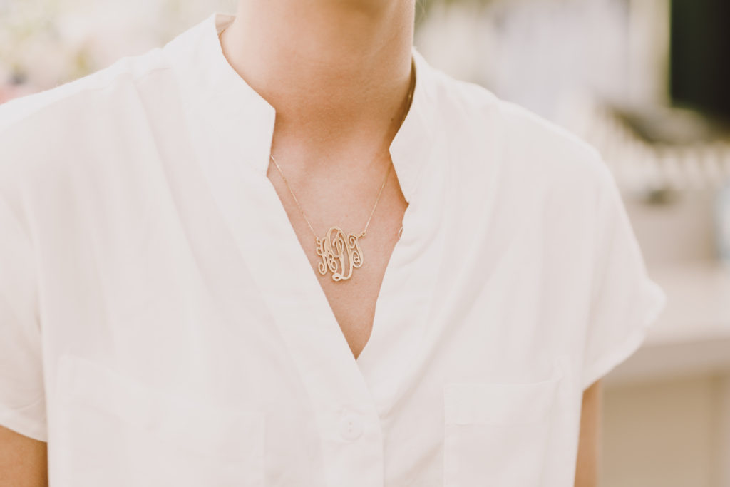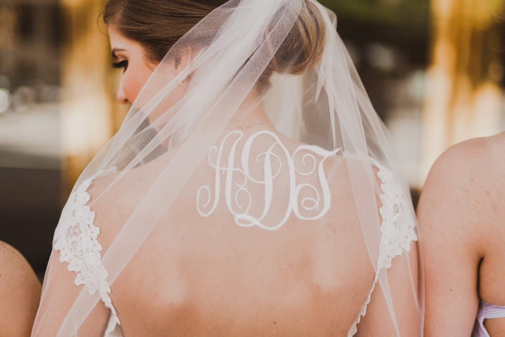 Here’s a little breakdown of my thought process behind the formatting of the monograms. To signify my last name changing, everything that was mine like my veil, necklace, shoes, etc. had my initials including my maiden name. Order: First Name | Married Last Name | Maiden Last Name. I did it this way to symbolize transitioning my old name to my new name. Now that I have been married for about 8 months, I have since left my old name and transitioned my monograms to my First Name | Married Last Name | Middle Name.