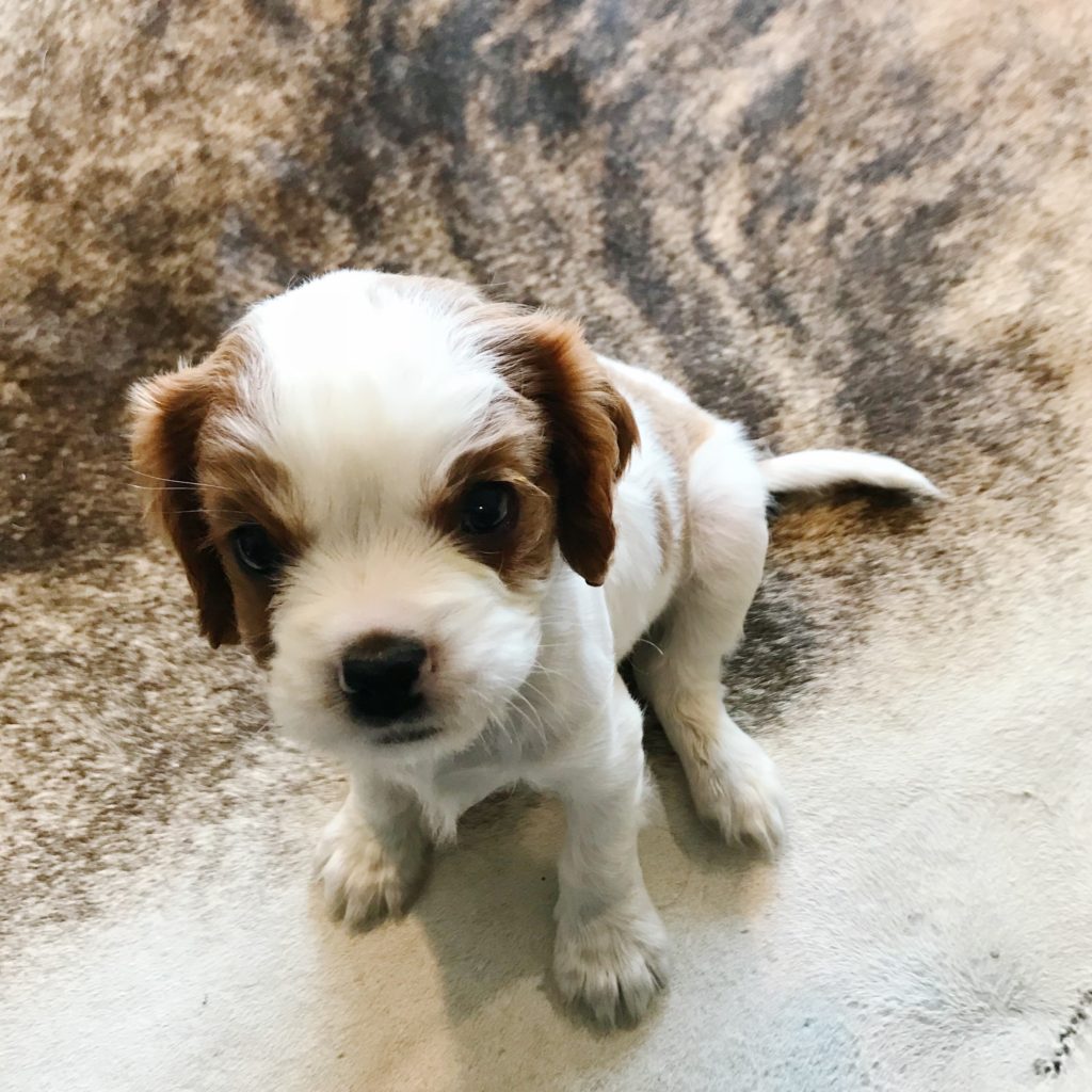 Our sweet puppy Beauregard (Beau) came home on Thursday, January 4th. Beau is a Cavalier King Charles with Blenheim coloring. He was the only boy in his litter and the runt.