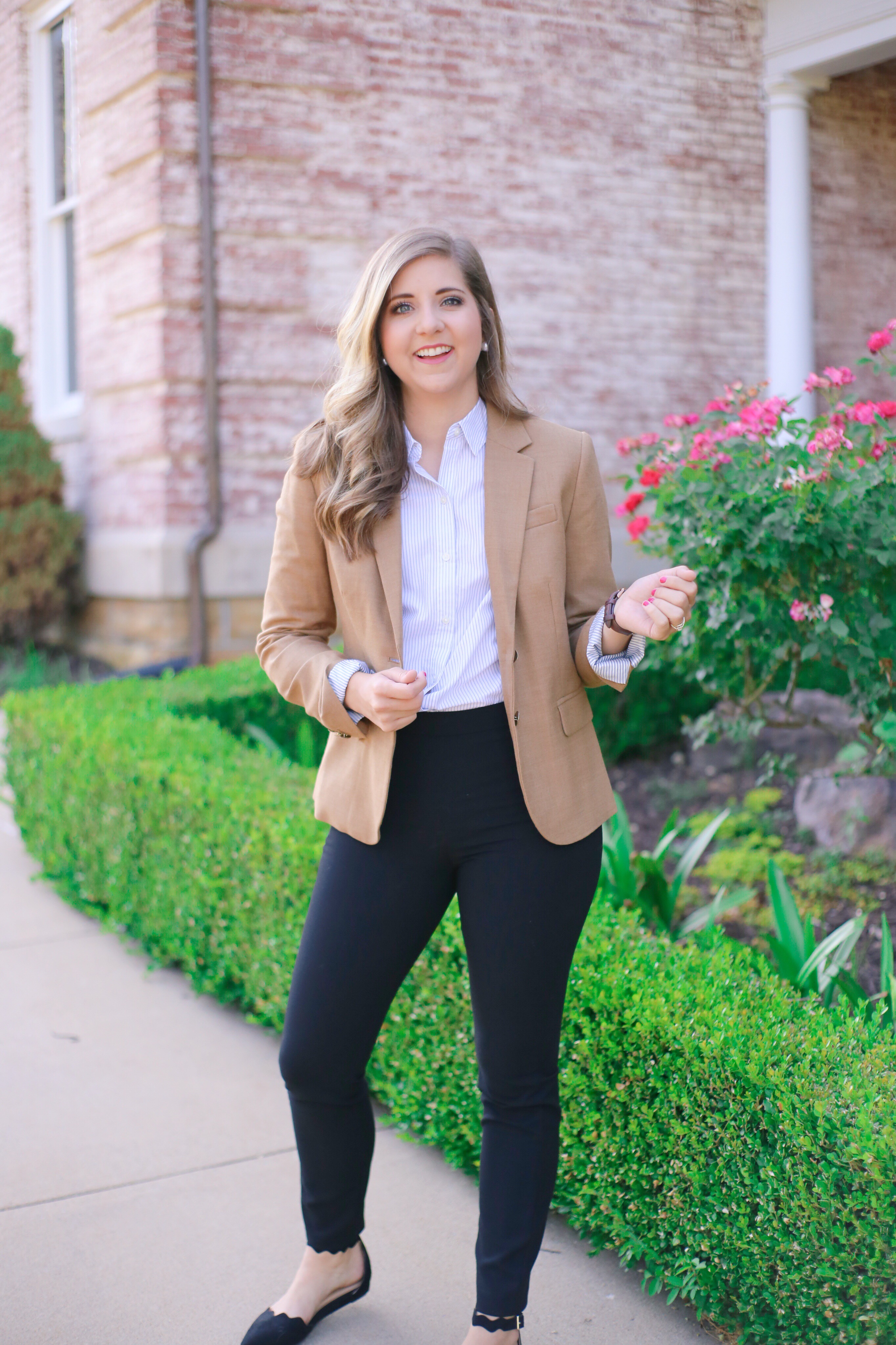 Right out of college, I had an “interview dress” I wore to every interview! It was super business professional but didn’t showcase who I was or my personality at all. Over the years, I’ve learned that dressing professionally is just as important as showcasing who you are. After all, it’s all about the first impression.