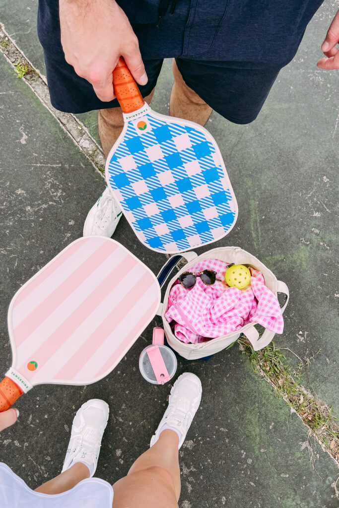 Of course, one of the most essential items to bring to a pickleball game is your paddle. Pickleball paddles come in a variety of shapes, sizes, and materials, so it’s important to choose one that feels comfortable and suits your playing style. Tangerine offers a range of cute and stylish pickleball paddles that not only look great but also perform well on the court. Their paddles are made from high-quality materials and feature a variety of fun and unique designs. So, if you’re looking to add some personality to your pickleball game, consider investing in a cute paddle from Tangerine. Not only will you look great, but you’ll also be playing with a high-quality paddle that can help to improve your game. You can also use code ANGELA10 for 10% off your Tangerine Paddle.