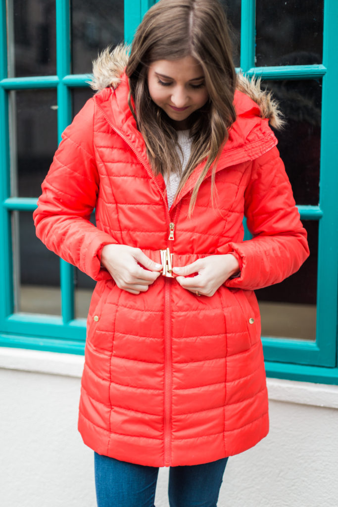 2. Add a vest or a fuzzy layer pending how cold it is. The other day I put a sherpa coat under my puffer coat and I told Jared this is my warm winter coat combo.