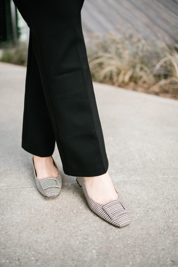 I also snagged my favorite buckle shoes in another print with Jared’s discount. This houndstooth print was classic and subtle but still added texture and style to any outfit. These flats are a great way to add some personality to your outfit, and the classic houndstooth print is a timeless pattern that will never go out of style. These flats are also comfortable and practical, making them the perfect choice for a long day at the office.